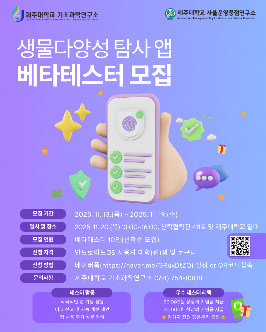 ⭐ [제주대학교 기초과학연구소] 생물다양성 탐사 앱 베타테스터 모집 안내 ⭐